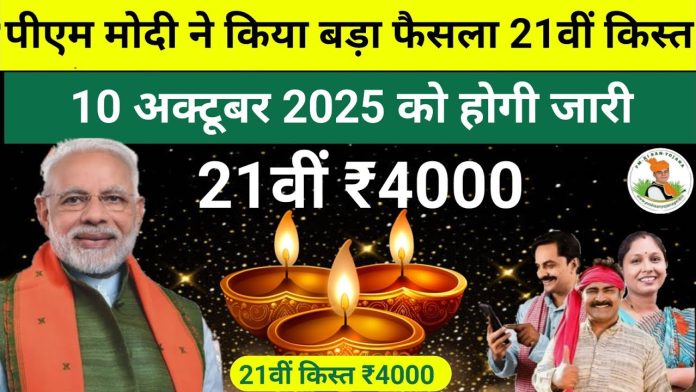 PM Kisan Nidhi Yojana के अंतर्गत आने वाले करोड़ों किसानों के लिए बड़ी खुशखबरी है। केंद्र सरकार जल्द ही पीएम किसान सम्मान निधि योजना की 21वीं किस्त जारी करने जा रही है। पिछले महीने ही 20वीं किस्त किसानों के खातों में ट्रांसफर की गई थी और अब उम्मीद है कि दिवाली से पहले यानी अक्टूबर 2025 के आखिरी हफ्ते तक 21वीं किस्त किसानों के बैंक खातों में पहुंच जाएगी।